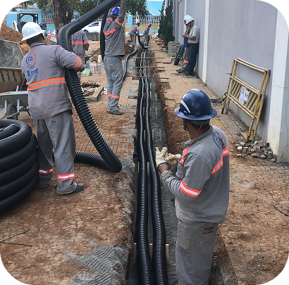 A RH Engenharia atua na construção de subestações de energia elétrica, com soluções voltadas à transformação dos níveis de tensão entre as diferentes etapas do sistema.